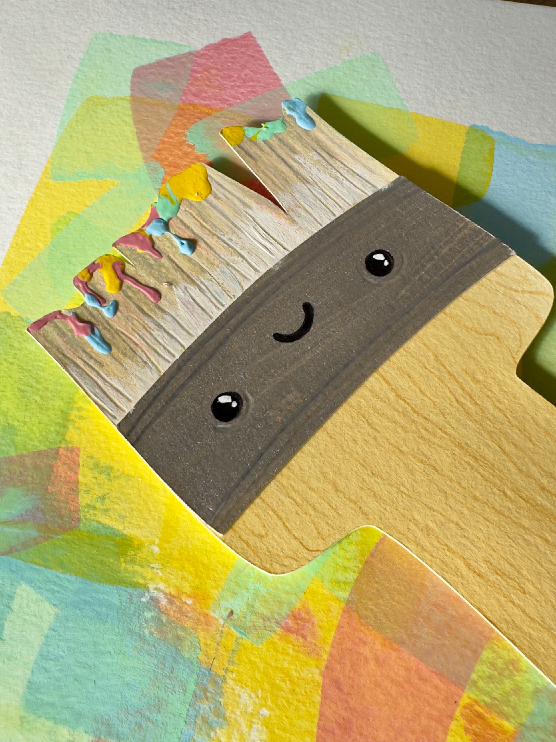 This is a layered paper illustration made with watercolor paper, watercolor, and colored pencils.